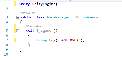 Eine weitere Funktion, die du unter using UnityEngine einfügst ist: