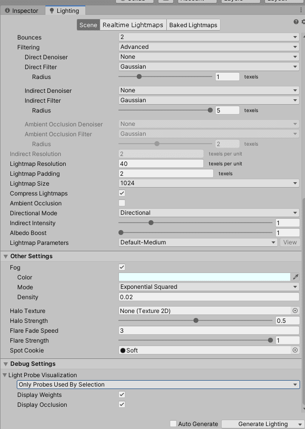 Deswegen öffnen wir Lighting in Unity. Veränderst du etwas an deinem Spiel, macht es Sinn, die Lichteffekte neu berechnen zu lassen. Wähle Build Lighting.