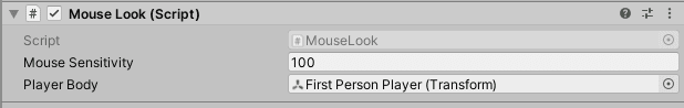 Wir benötigen dafür das PlayerMovement Script, dass in Visual Studio geschrieben wird. Füge dieses zum FirstPersonPlayer hinzu.