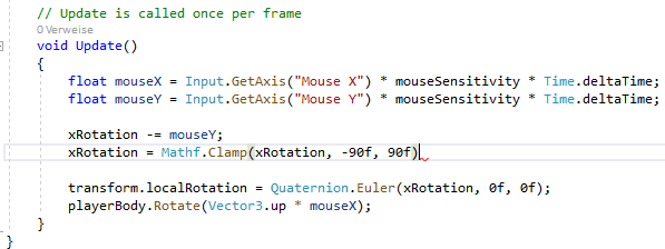 In der Update-Funktion des Scripts soll eine Inputfunktion für die Mausbewegung eingefügt werden.