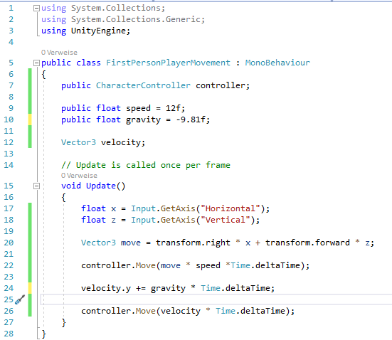 Damit hast du eine Richtung erstellt, die auf der Spielerbewegung und die jeweilige x- und z-Bewegung basiert. Dadurch bewegt sich die Spielfigur immer auf Basis der Richtung, in der er blickt.