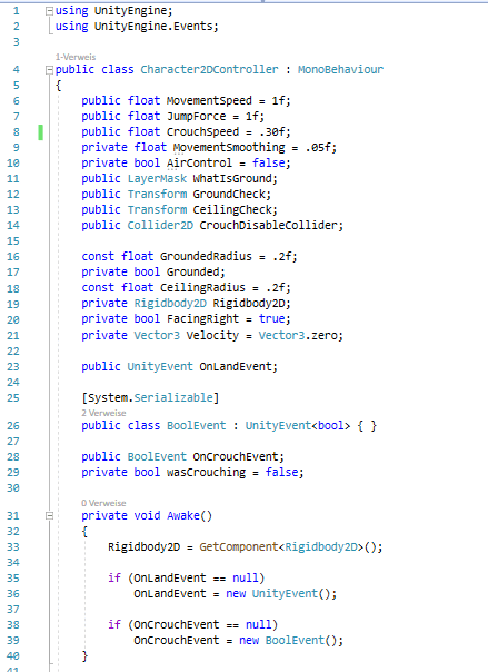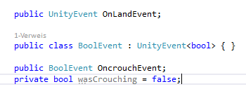 Desweitern wird ein UnityEvent benötigt, um zu erkennen, ob der Charakter nach dem Springen landet oder nicht: