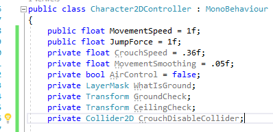 private float CrouchSpeed = .36f;