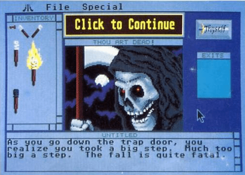 Es handelt sich um ein grundlegendes Adventure. Du siehst einen Bildschirm und einen Text. Dann wählst du Gegenstände und die jeweiligen Aktionen aus. Passende Soundeffekte bieten eine gruselige Atmosphäre.