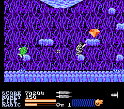 Im Spiel helfen Zaubersprüche gegen Feinde und Elementarbosse. Einige werden gekauft, andere müssen gefunden werden. Zu den Zaubersprüchen gehören „Der vertraute Zauber“, der Feinde in Geld verwandelt und dabei hilft, goldene Gegenstände wiederzugewinnen, der „Drachenzahnzauber“, der Feinde in Nahrung verwandelt, der „Schleier des Schlummerzaubers“, der Feinde verlangsamt, das „Silbervlies“ Zauber, der Kuros vorübergehend unbesiegbar macht, und der „Wasserspeierzauber“, der eine nach oben gerichtete Wassersäule erzeugt, die es Kuros ermöglicht, Höhen zu erreichen. Jeder Zauber hat eine begrenzte Anzahl von Verwendungszwecken, bevor er aus dem Inventar des Spielers verschwindet. Andere Zaubersprüche sind notwendig, um die Elementarbosse zu besiegen. Diese Zaubersprüche befinden sich in jeder der vier Domänen und umfassen „Windbane“, „Blightwater“, „Firesmite“ und „Earthscorch“. Diese Zaubersprüche können nur in den entsprechenden Levels verwendet werden, in denen sie erhalten werden, und jeder verbraucht bei Verwendung Magie. Spieler können zusätzliche Magie erhalten, indem sie kleine, schwebende Goldblasen sammeln, die zufällig erscheinen oder durch die Nähe des Spielers zu geheimen Orten ausgelöst werden. Spieler können ihre Punktzahl auch erhöhen, indem sie Feinde besiegen oder Gegenstände sammeln. Versteckt auf dem Weg sind die „Relikte von Sindarin“, die beim Sammeln viele Punkte wert sind; Diese bestehen aus einem Buch, einem Kreuz, einem Handschuh und einem Ring. Am Ende des Spiels können Spieler mit einer ausreichend hohen Punktzahl ihre Namen in die „IronSword Hall of Fame“ eintragen. Die Liste wird jedoch zurückgesetzt, wenn die Konsole ausgeschaltet wird. Das Spiel enthält auch eine Passwortfunktion, mit der Spieler über den „Magic Spell Screen“ ein Passwort erhalten können, mit dem sie das Spiel zu einem späteren Zeitpunkt fortsetzen können, auch nachdem die Konsole ausgeschaltet wurde.