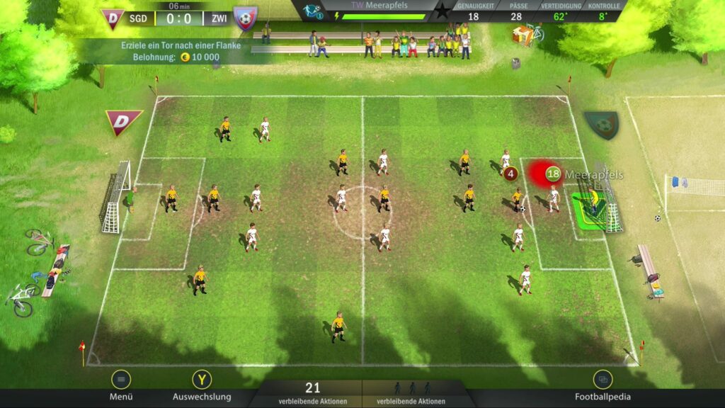 Mit Ruhm verbesserst du die Erfahrung und kannst diese praktisch investieren. Spieler haben Werte wie Pässe, Genauigkeit, Verteidigung oder Kontrolle. Abwehrspieler benötigen eine höherwertige Verteidigung. Mittelfeldspieler sollten ihre Pässe beherrschen. Leider sind diese Werte stark dem Zufall überlassen.