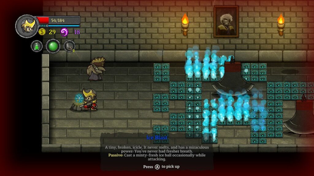 Nachdem du die oft besuchte Gefängniszelle verlassen hast, wirst du von einem Schmied, Dieb und einem Apotheker begrüßt. Jeder von ihnen bietet seine eigenen Artikel an. Der Schmied stellt dir eine Auswahl an Waffen zur Verfügung, während der Apotheker einen zufälligen Trank anbietet. Nach ein paar Freischaltungen werden diese Möchtegern-Händler mehr Vielfalt an Gegenständen anbieten. Zum Beispiel erhöht eine der Freischaltungen die Anzahl der Startwaffen, die der Schmied dir zur Verfügung stellt. Dies alles spielt sehr gut in der schurkenhaften Natur, da alles zufällig ist und nichts versprochen wird. Der Rest des Spiels verläuft so, wie du es sich vorstellen kannst: Der Spieler versucht, es so weit wie möglich zu schaffen, ohne zu sterben. Wenn du stirbst, kehrst du als neuer Charakter in deine Lieblingsgefängniszelle zurück.