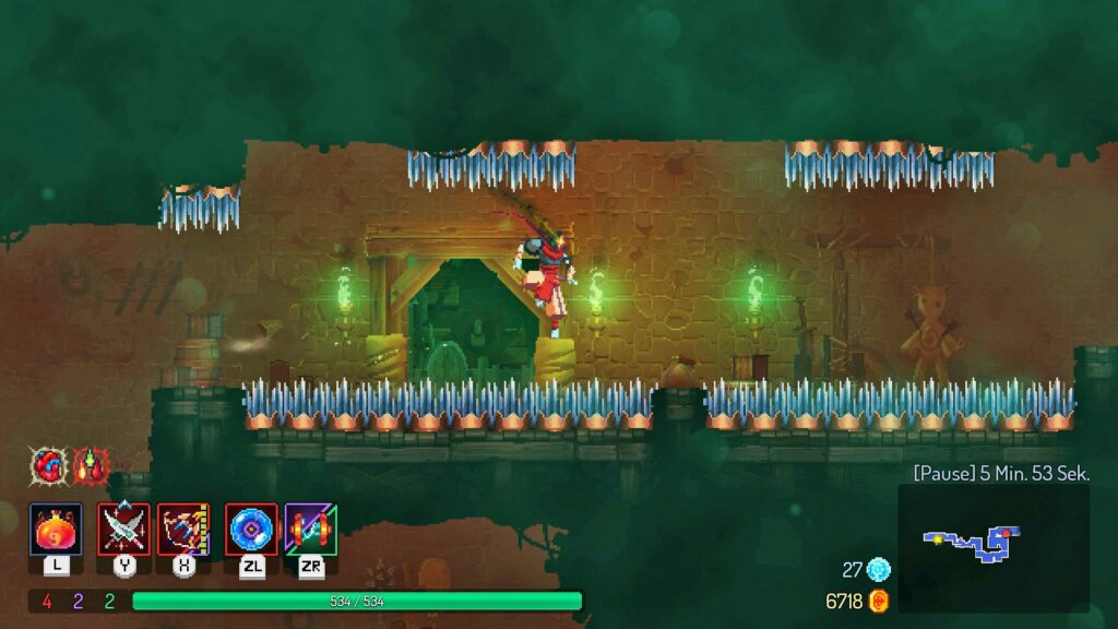 Die Level gestalten sich abwechslungsreich mit schön animierten Spielfiguren und Gegnern. Die Steuerung ist präzise. Dead Cells sorgt dafür, dass du taktisch vorgehen musst, da du sonst im Spiel automatisch Selbstmord begehst.