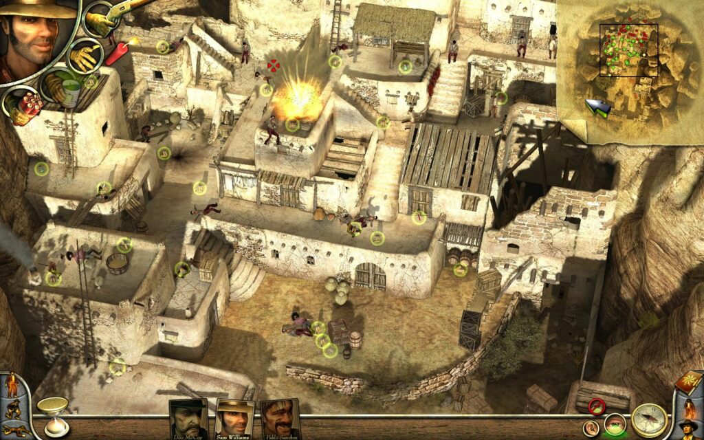Die Palette der einzelnen Charaktere müssen kombiniert werden, da die Feinde in der Regel in der Übermacht sind. 18 Einsätze musst du in Desperados 2 bestehen. Diese gestalten sich abwechslungsreich, jedoch mit einem hohen Schwierigkeitsgrad.