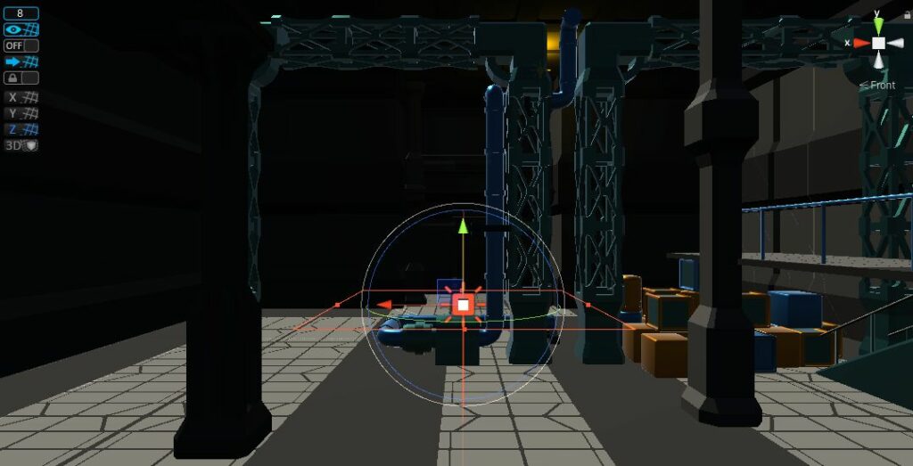 Navigiere zum Dropdown-Menü GameObject und wählen Sie Licht> Flächenlicht. Bewege und drehe deom Flächenlicht mit dem Transformations-Gizmo.