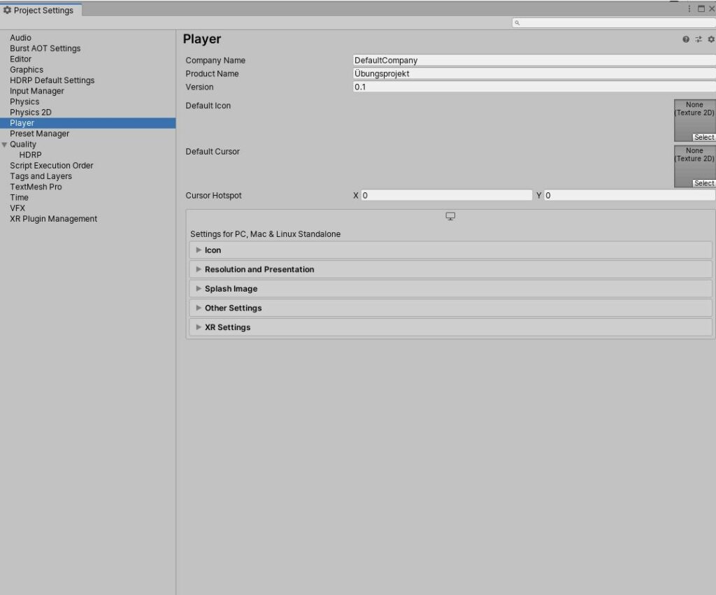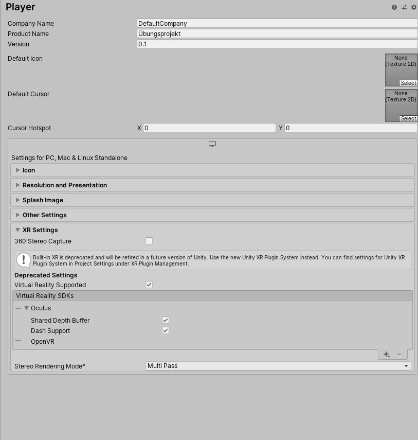 5. Schließe das Fenster Player-Einstellungen. Jetzt ist dein Projekt VR-tauglich.