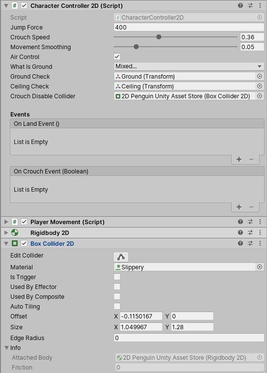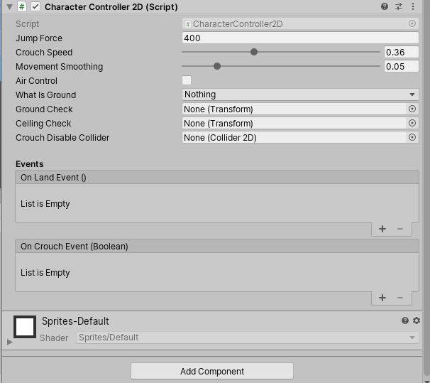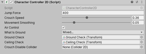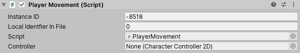 Dann erscheint im Player Movement Script der Character Controller 2D: