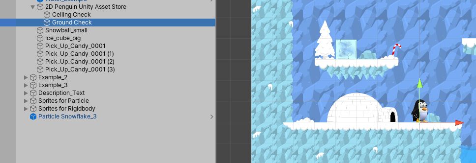 Um die Checks möglich zu machen, benötigst du leere Objekte, die feststellen, wo sich was befindet. Erstelle über Create –> Empty Object ein erstes Objekt und kopiere es mit Strg+D. Bewege die jeweiligen Objekte zum obersten Abschnitt der Figur sowie zum unteren Abschnitt. Benenne das obere Objekt Ceiling Check und das untere Objekt mir Ground Check.