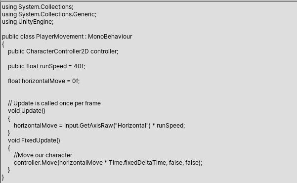 horizontalMove = Input.GetAxisRaw(„Horizontal“) * runSpeed;