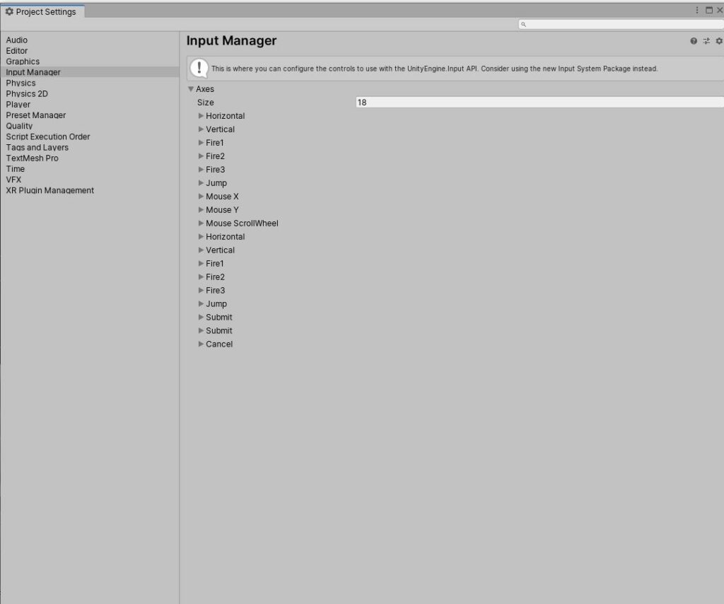 Die Eingaben für die Charakterbewegungen findest du in den Projekteinstellungen von Unity.