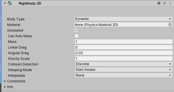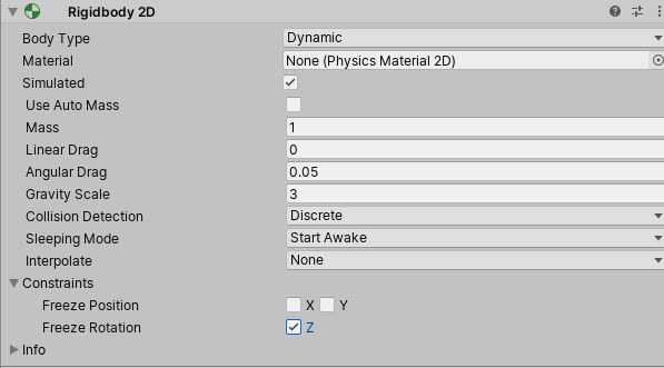 Füge als nächstes einen Rigidbody 2D hinzu, um deinem Charakter Physik hinzufügen.