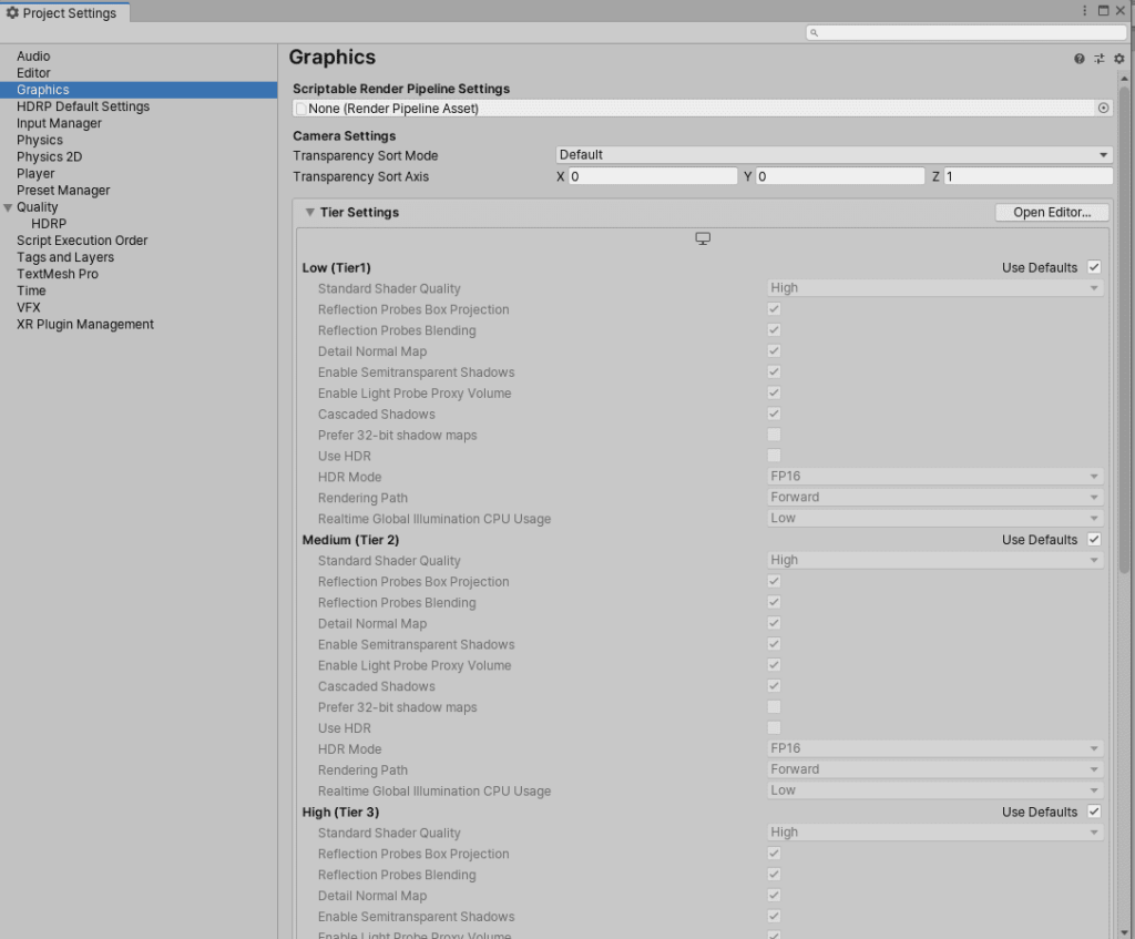 Gehe wie folgt vor, um ein neues Projekt mit aktiviertem HDRP zu starten: Öffne den Unity-Editor und klicke auf die Schaltfläche Neues Projekt. Wähle im Dropdown-Menü Vorlage die Option Hochauflösendes RP (Vorschau). Klicke auf die Schaltfläche Projekt erstellen. Um ein vorhandenes Projekt zu aktualisieren, benötigst du zuerst HDRP aus dem Paketmanager in Unity. Gehe zur Dropdown-Liste Fenster und wähle den Paketmanager, um das Fenster Pakete zu öffnen. Stelle sicher, dass alle Pakete in der Dropdown-Liste oben links ausgewählt sind. Suche die High Definition RP in der Liste und wähle sie aus. Klicke auf Installieren. Nachdem das Paket über den Paketmanager installiert wurde, musst du das HDRP-Asset zum Einstellungsfeld „Scriptable Render Pipeline Graphics“ hinzufügen. Gehe zur Dropdown-Liste Bearbeiten und wähle Projekteinstellungen> Grafiken.