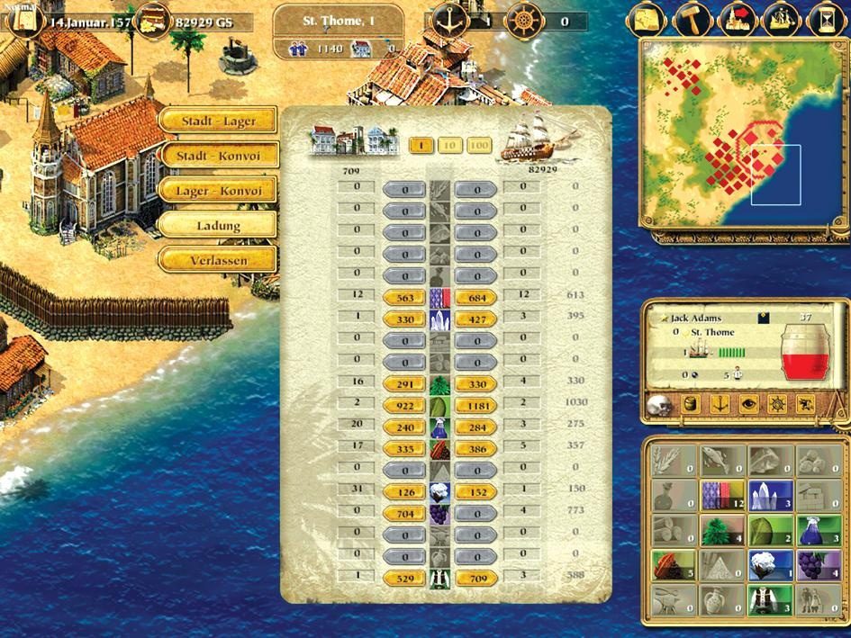 Mit Port Royal stürzt du dich in eine abenteuerliche Seeschlacht. Der Ziel besteht darin, Reichtum und Wohlstand zu zu erlangen. In Port Royal tust du dies, indem du handelst. 20 Güter stehen für den Handel zur Verfügung. Mit diesem beladest du deine Schiffe und schickst bis zu 100 von ihnen über das Meer. 90 Häfen läufst du an und auch das Umland gehört zu Spielflächen. Insgesamt konkurrieren bis zu vier Nationen um den Markt. Franzosen, Engländer, Holländer und Spanier sind Handelspartner, aber auch Konkurrenten. Die Gouverneursstädte verschiffen deine Waren nach Europa. Bis zu zehn Konvois mit zehn Schiffen schippern unter einer Flagge über das Meer.