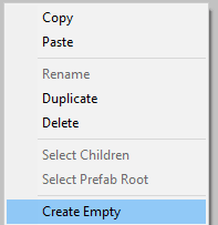 1. Klicke in der Hierarchie auf Erstellen> Leer erstellen, um ein leeres GameObject zu erstellen.