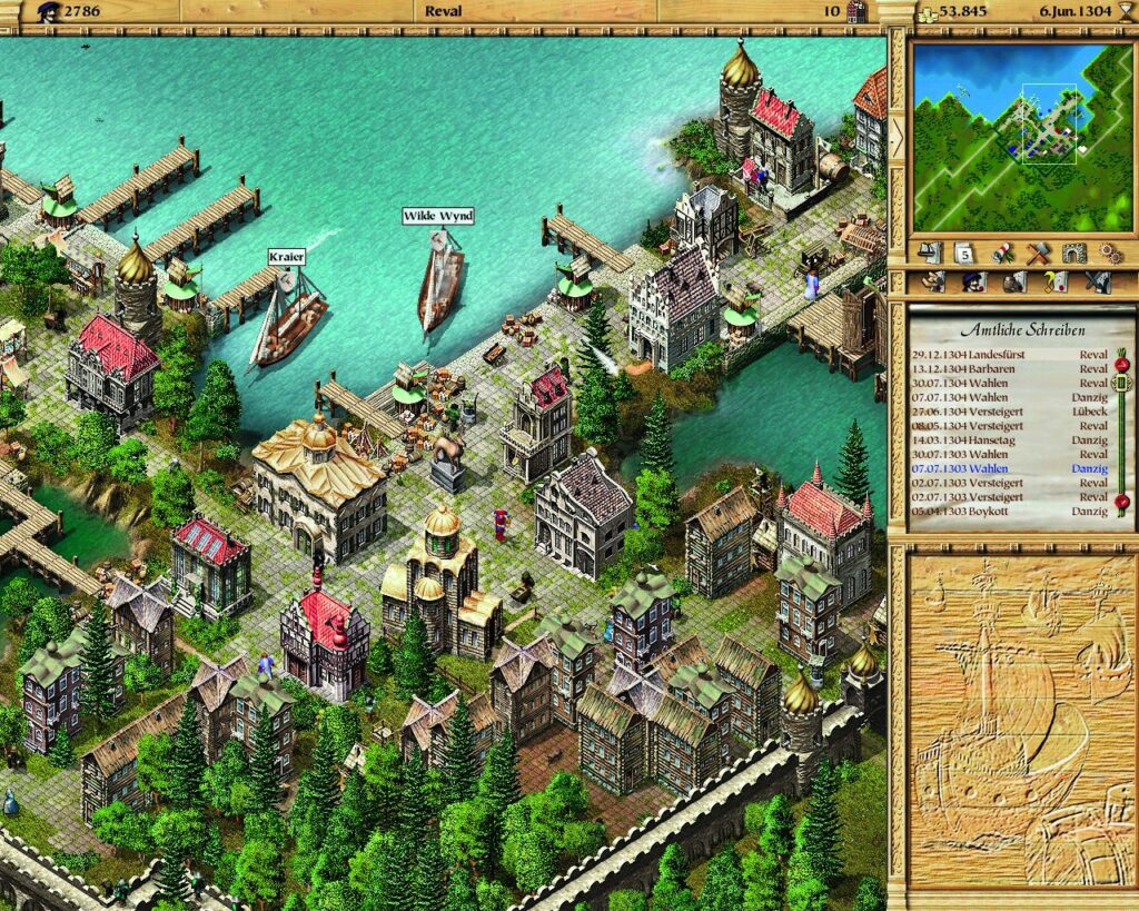 Du kannst Kredite vergeben und bekommst als Entlohungn Zinsen von deinen Schuldnern und damit einige Boni. Baust du Wohngebäude generierst du Mieteinnahmen und du hast die Möglichkeit, mit Produktionsgebäuden eigene Waren herstellen zu lassen. Du jagst Piraten und besserst damit deine Kasse auf oder du heuerst sie an. Wird ein Piratenkapitän erwischt, rechest du mit gesellschaftlichen Konsequenzen. Das kostet dich Geld und Ruf in der Bevölkerung. Dann stehen deine Chancen für die Wahl zum Eldermann schlecht.