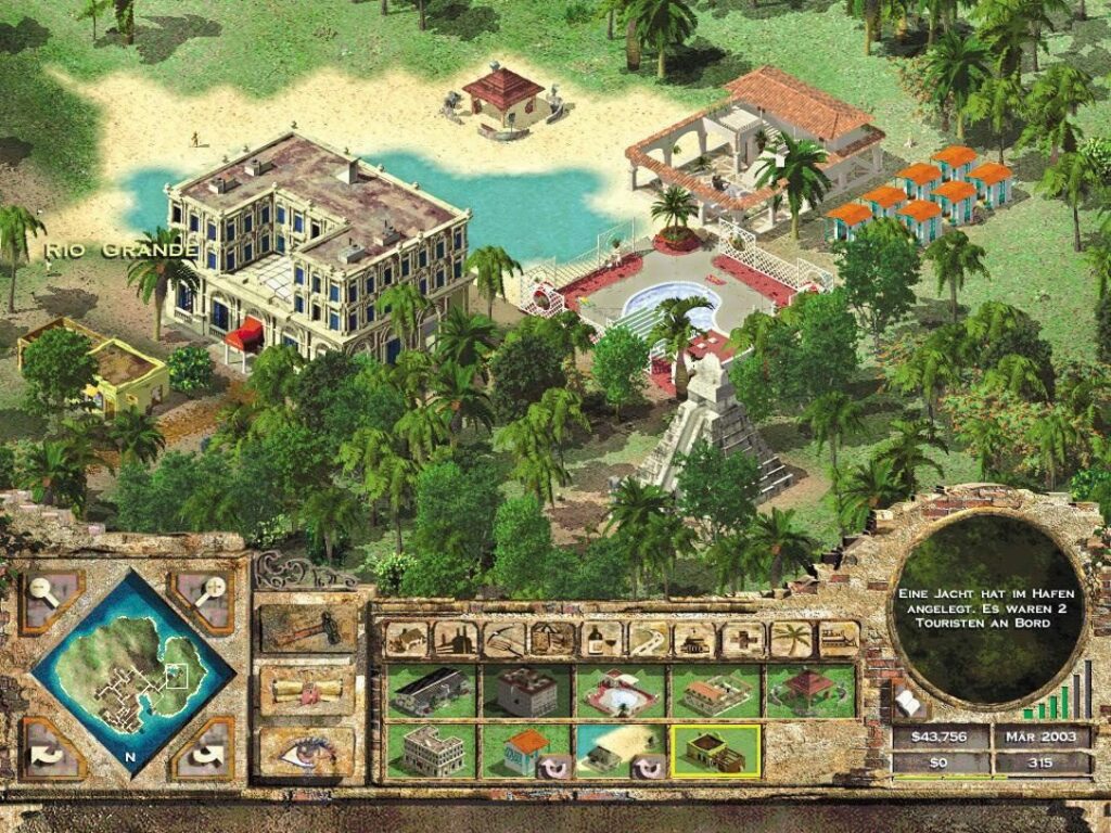 Tropico 1 gestaltet sich als karibisches Aufbaustrategiespiel. Du spielst einen Diktator, der über seine Inselmetropole herrscht. Es gilt die Touristen an den weißen Traumständen auszunehmen und weitere Touristen anzulocken, um die Wirtschaft anzukurbeln. Die Arbeiter werkeln auf den Tabakplantagen und du regierst genüsslich deine Bananenrepublik.